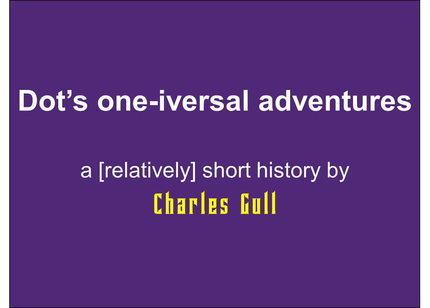 The title page o, to Dot's one-iversal adventures in relativity
